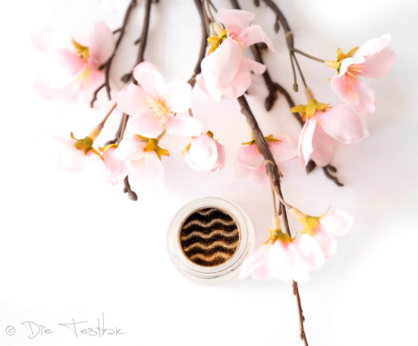 Ich finde es super schade, dass das BABOR Velvet Waves Eye Shadow in Gold-Bronze auf den Bildern nicht so schön rüberkommt wie real. Es glitzert so wunderschön und kommt in einer tollen Wellenoptik. Das Produkt befindet sich in einem kleinen Tiegel. Es lässt sich leicht entnehmen und sehr gut auf dem Lid verteilen. Die Textur ist wunderbar weich und verschmilzt quasi mit der Haut. Wenn man nur eine Schicht aufträgt bekommt man einen leichten Schimmer… wenn man es schichtet und mehrere Lagen aufträgt kann man diesen Effekt und die Deckkraft intensivieren. Das Ergebnis ist einfach toll. 🙂