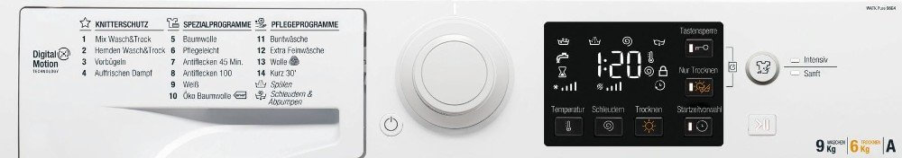 - Energieoptimierte Grundprogramme für: Baumwolle, Pflegeleicht, Antiflecken 45 Min., Antiflecken 100, Weiß, Öko Baumwolle, Spezielle Programme für Feinwäsche, Antiflecken 100, Antiflecken 45‘, Wolle, Buntwäsche, Kurz 30‘, Weißes, Abgestimmte Farbprogramme: Weiße Wäsche, SteamCare Knitterschutzprogramme: Mix Waschen & Trocknen, Hemden Waschen & Trocknen, Vorbügeln, Auffrischen, Hemden Waschen & Trocknen: erspart bis zu 30% Bügelzeit1, Mix Waschen & Trocknen 40°: entfernt die häufigsten Flecken und vereinfacht das Bügeln, Antiflecken 100: entfernt mehr als 100 Flecken bei nur 40°C, ganz ohne Vorbehandlung, Antiflecken 45‘: entfernt die 30 gängigsten Flecken bei 40°C in nur 45 Minuten