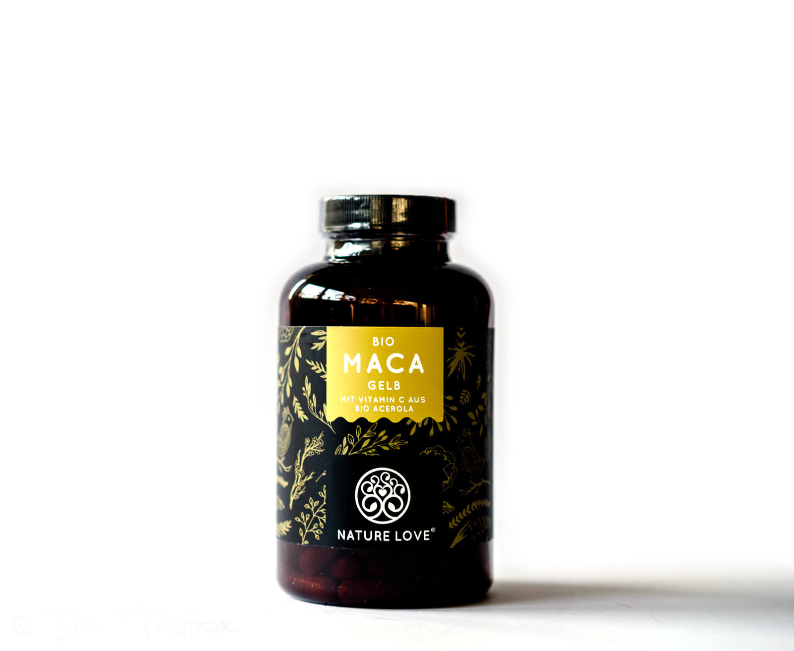 Die berühmte Maca-Pflanze stammt aus den peruanischen Anden und wird dort seit ca. 2000 Jahren angebaut. Es gibt unterschiedliche Maca-Sorten, die sich in ihren Farben sowie auch anderen Merkmalen unterscheiden. Das Äussere also die Knollen der wichtigsten Maca-Sorten sind gelb, schwarz, lila bis rot. Die Pulver der verschiedenen Maca-Farben zeigen jedoch nur minimale Farbunterschiede. Die Maca zählt in den Anden zu einem der Vollnahrungsmittel. Sie ist reich an allen essentiellen Aminosäuren, wertvollen ungesättigten Fettsäuren, den Vitaminen B1, B2, B3 und C, Mineralstoffen und Spurenelementen wie Kalium, Eisen und Magnesium. Die Maca wird jedoch auch als Hausmittel verwendet. Vor allem für alle Arten von hormonell bedingten Themen, wie z.B. bei Menstruations- und Wechseljahrsbeschwerden. Wir stellen Euch heute die Kapseln von Nature Love vor, welche das Pulver der gelben Maca enthalten. Diese sollen sich besonders positiv auf die Wechseljahre auswirken. So soll sie sanft den Östrogenspiegel anheben, was Hitzewallungen entgegenwirken soll. Aber auch Symptomen wie Depressive Verstimmung, Antriebslosigkeit, Schlaflosigkeit, Austrocknung der Haut und Faltenbildung, Emotionale Instabilität und Konzentrationsschwäche, Migräneneigung, Libidoverlust, Gedächtnisstörungen, Kreislaufschwäche und Erhöhtes Risiko für Osteoporose und Herzkreislauferkrankungen kann das gelbe Maca entgegenwirken indem es die Bildung von Östrogen sanft anstößt. Am Ende dieses Berichts habe ich Euch ein paar Berichte verlinkt, in denen Ihr mehr sehr interessante Informationen zu Maca findet.