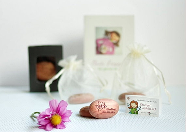 Die Handschmeichler mit den Engelchen wurden in hübschen Organzabeuteln geliefert.