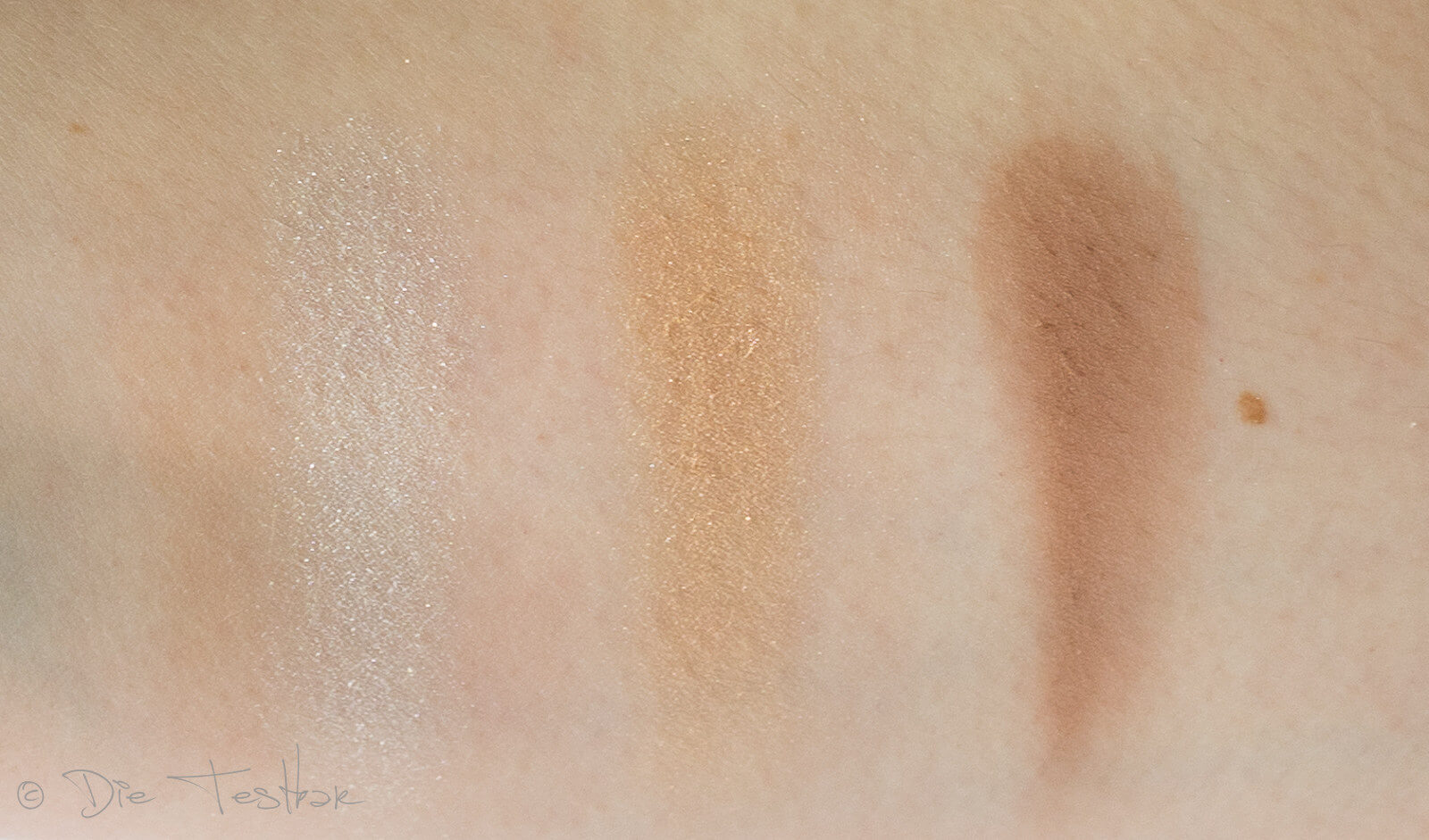Die Lidschatten aus dieser Palette finde ich richtig schön. Die Farben sind schön natürlich und toll aufeinander abgestimmt. Es ist alles enthalten was Ihr an Lidschatten benötigt um einen tollen Look zu kreieren. So findet sich eine matte und zwei schimmernde Lidschatten.