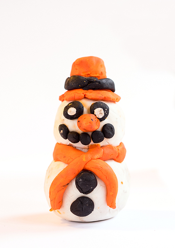 In dem Set ist ein großes Stück weisse Knete, orangefarbene Knete und schwarze Knete enthalten mit denen man einen Schneemann bauen kann. Das funktioniert auch richtig gut. Die Knete lässt sich gut formen und gut zusammensetzen.