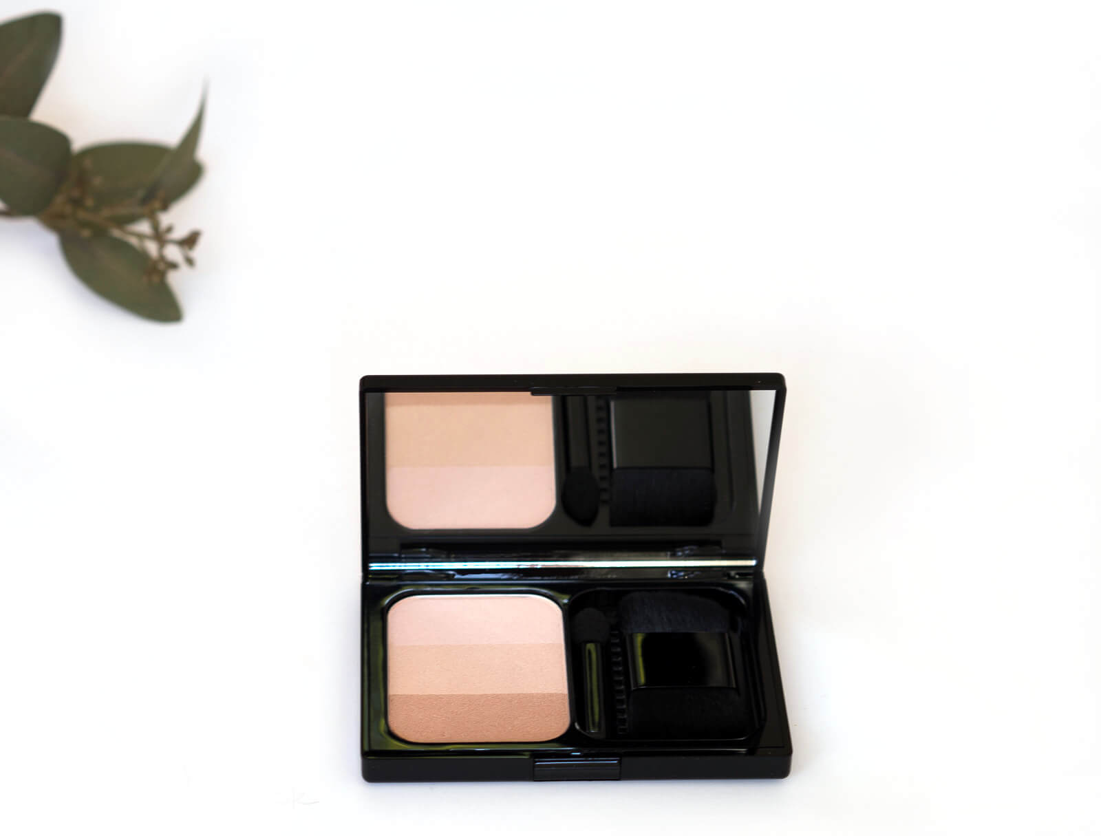 Das Highlighter Trio von LA BIOSTHETIQUE kommt in einem hübschen Case welches mit einem Spiegel und zwei Pinsel bestückt ist. Es ist ein etwas breiterer, flacher, kleiner Puder-Pinsel dabei und ein Lidschattenapplikator-Mini-Applikator. Mit dem etwas größeren Pinsel kann man zb alle drei Farben gemischt entnehmen und auftragen und mit dem Applikator, beispielsweise eine der drei Farben einzeln entnehmen und gezielt auf die Lider applizieren. Die Farben würde ich ins rose-gehende einstufen. Die Glitzerpartikel sind Golden. Ich finde der Highlighter wirkt sehr warm und eignet sich daher besonders für warme Hauttöne.