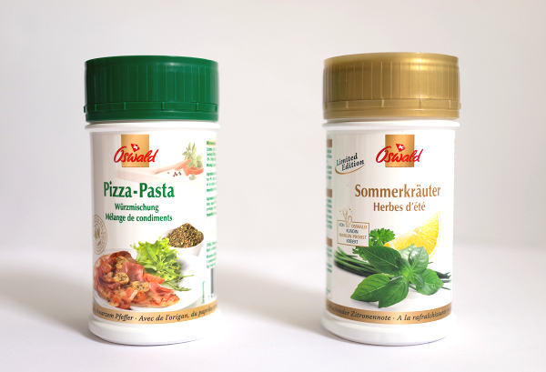 Wir haben vier Gewürzmischungen von Oswald erhalten. Eine von diesen, die Pizza-Pasta-Gewürzmischung möchte ich Euch heute näher vorstellen. Zuerst zeige ich Euch welche Gewürzmischungen wir erhalten haben.